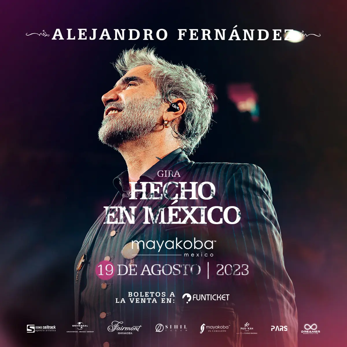 La gira “Hecho en México” visitará varios estados del país, así como otros países entre los que destacan España, Estados Unidos y Canadá. Incluye una cita especial en la capital el 20 de mayo en la Monumental Plaza de Toros, donde se presentará ante 50 mil personas. Sin embargo, si sus seguidores buscan una experiencia más íntima y con un bello paisaje que complemente a la perfección la noche, el concierto de Alejandro Fernández en Mayakoba es la opción ideal.
