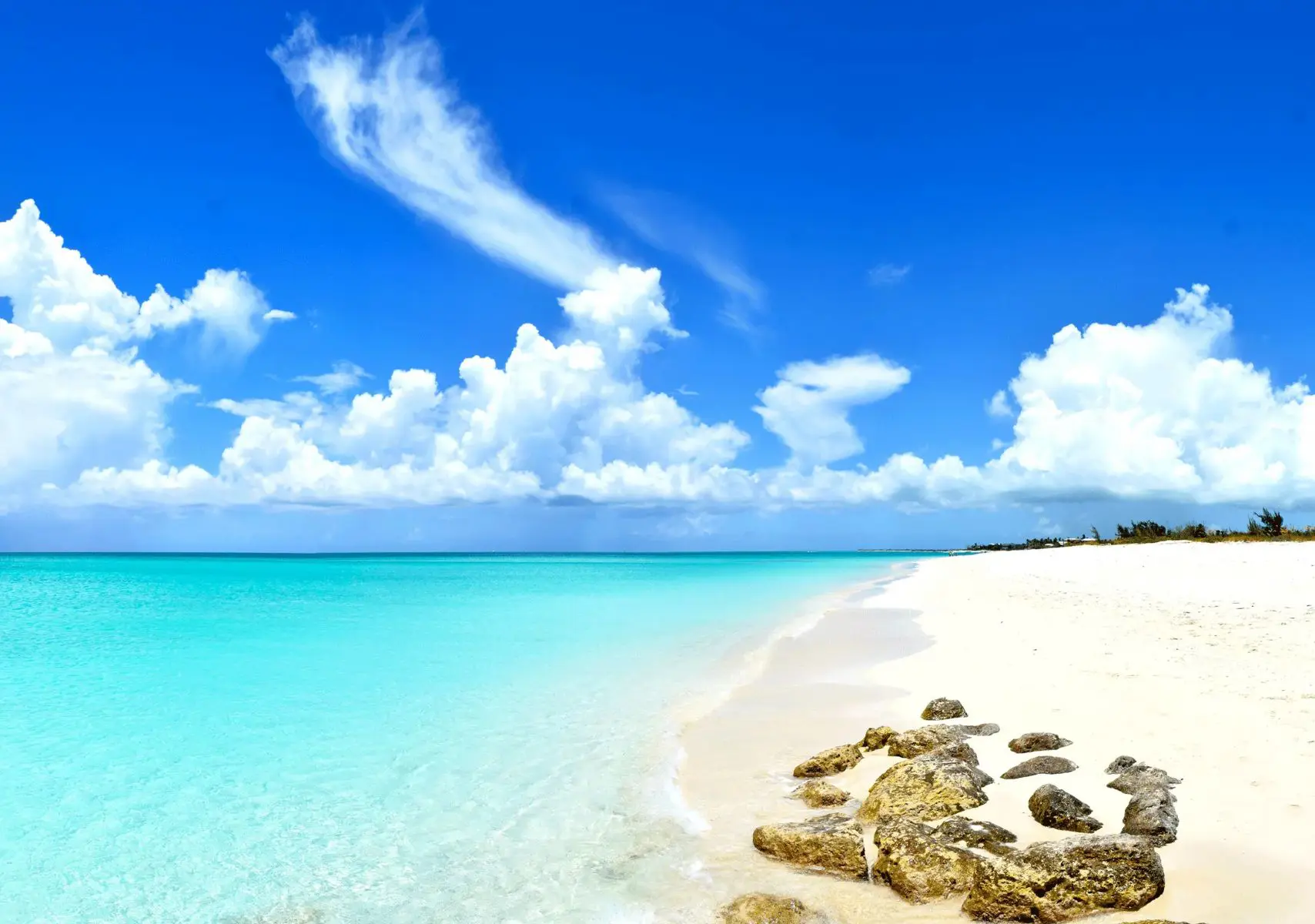 Grace Bay o Bahía de Gracia en las Islas Turcas y Caicos, también se encuentra en el Caribe y es famosa por su simplicidad.